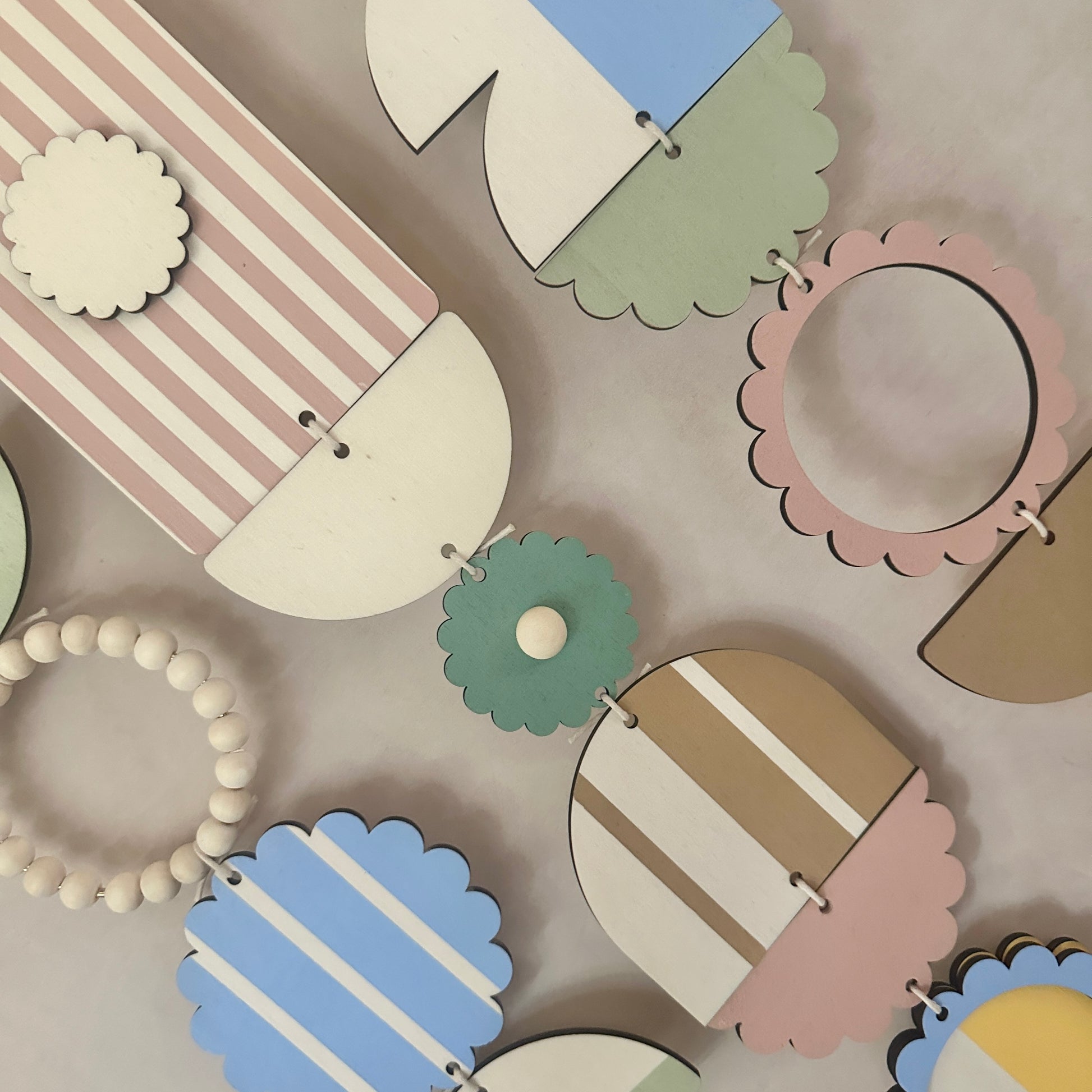 Botanical Wall Art - Geometric Wall Art - Colourful Wood Wall Decor