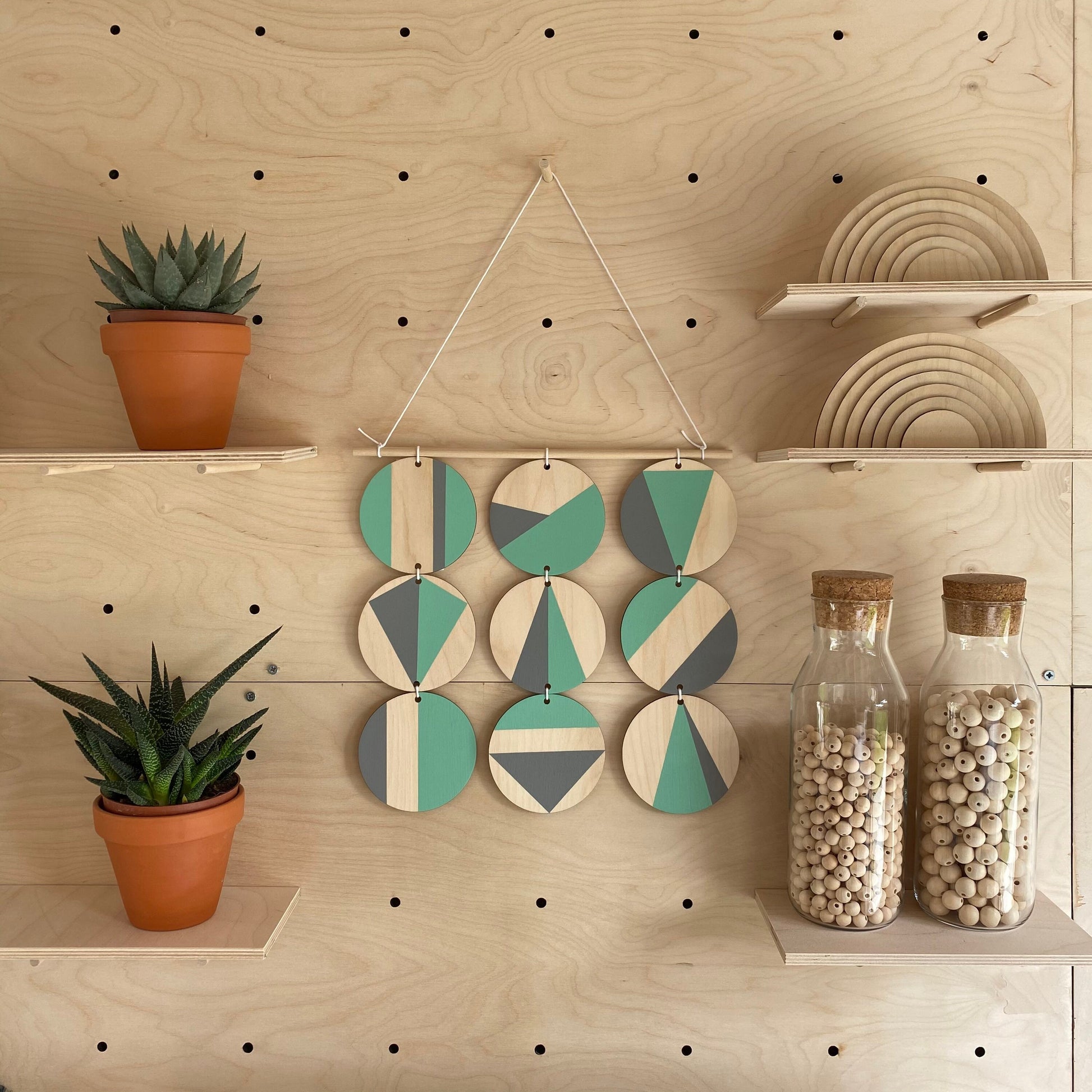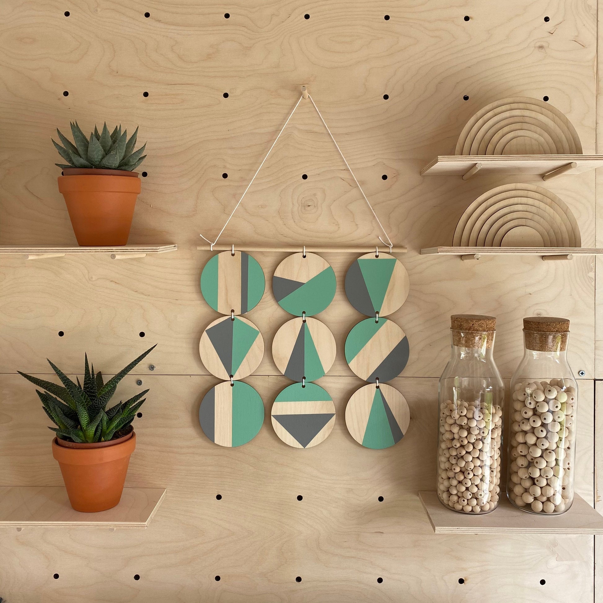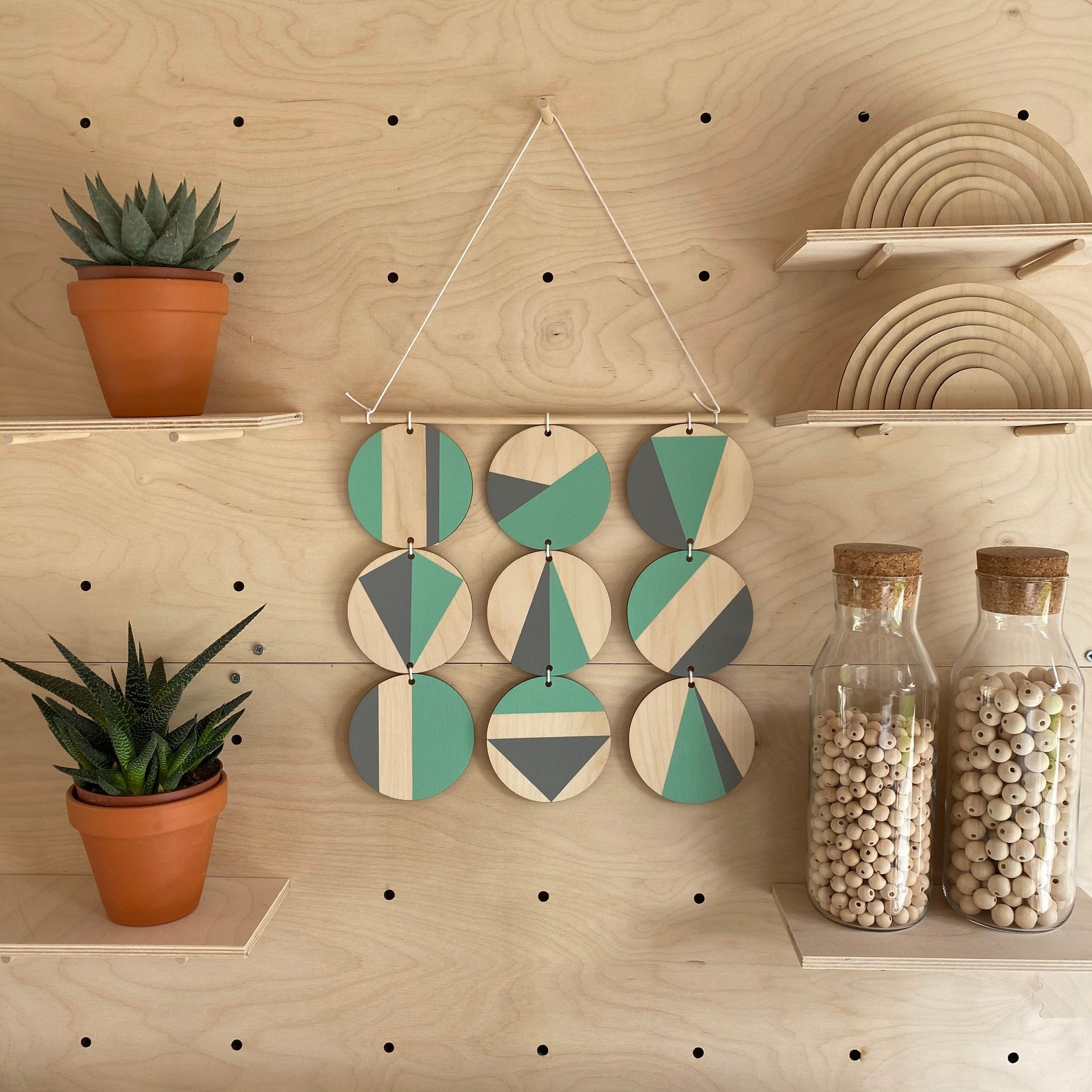 Mint Art - Geometric Wall Hanging - Scandi Hygge Boho - Wooden Art - Mint Wall Art Bright - Mint Green and Grey Decor - Mint Green and Grey
