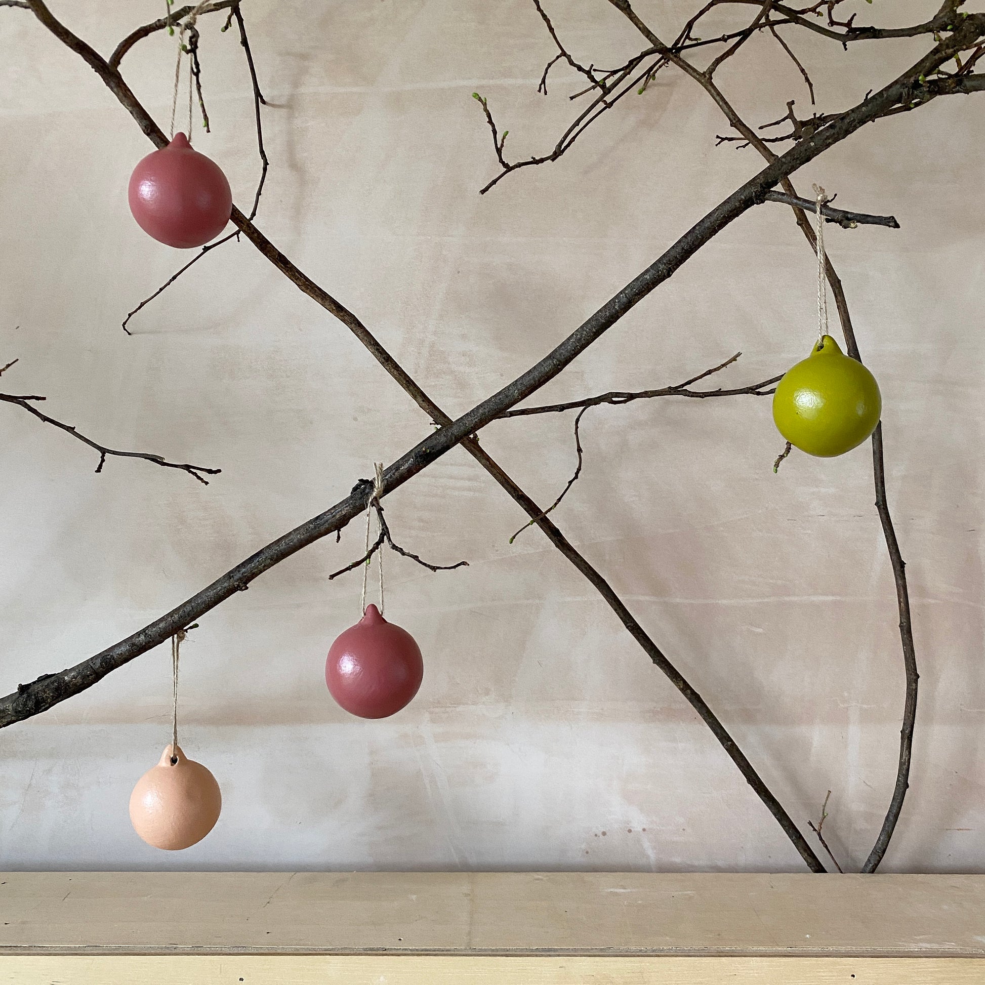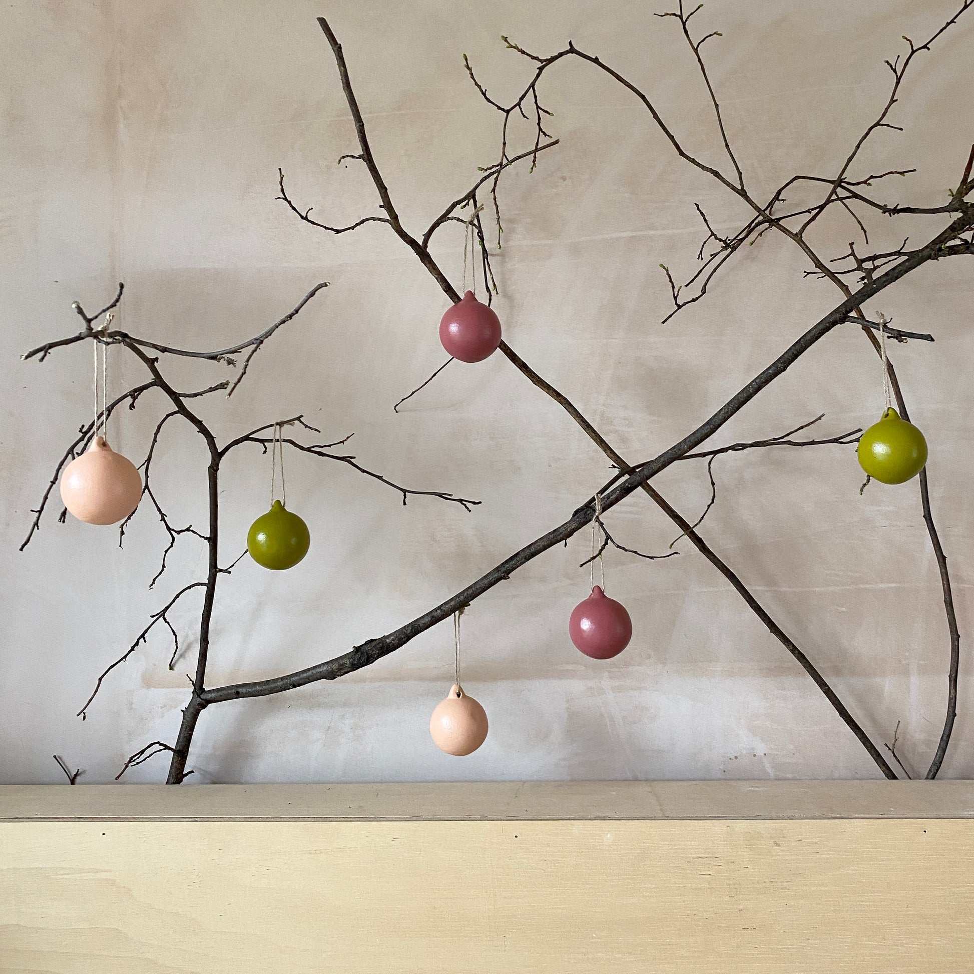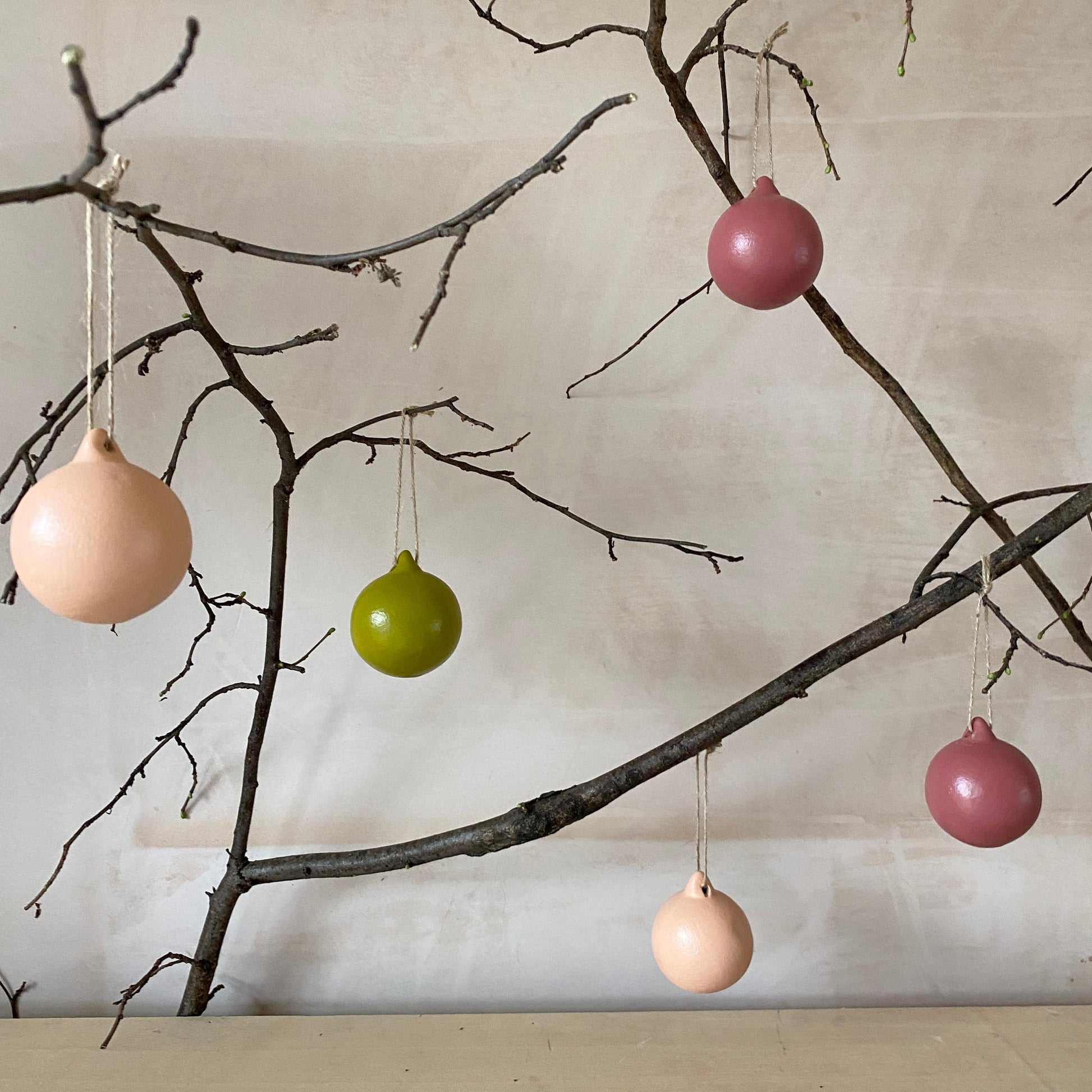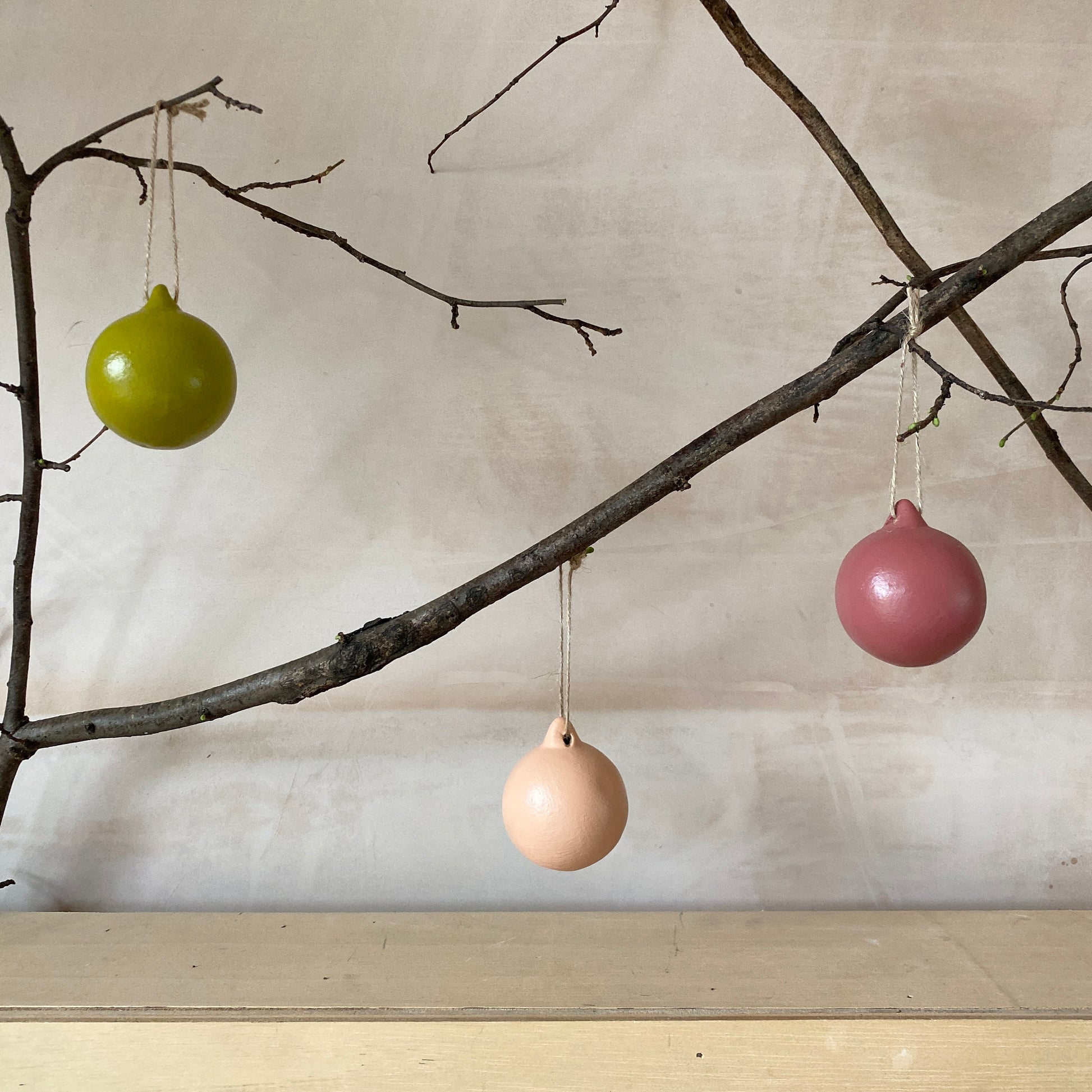 These are our eclectic colour ceramic baubles that perfectly match our range of award winning geometric style wall hangings. Other colours can be done at request. Please check out my design award winning wall hangings for matching decor!