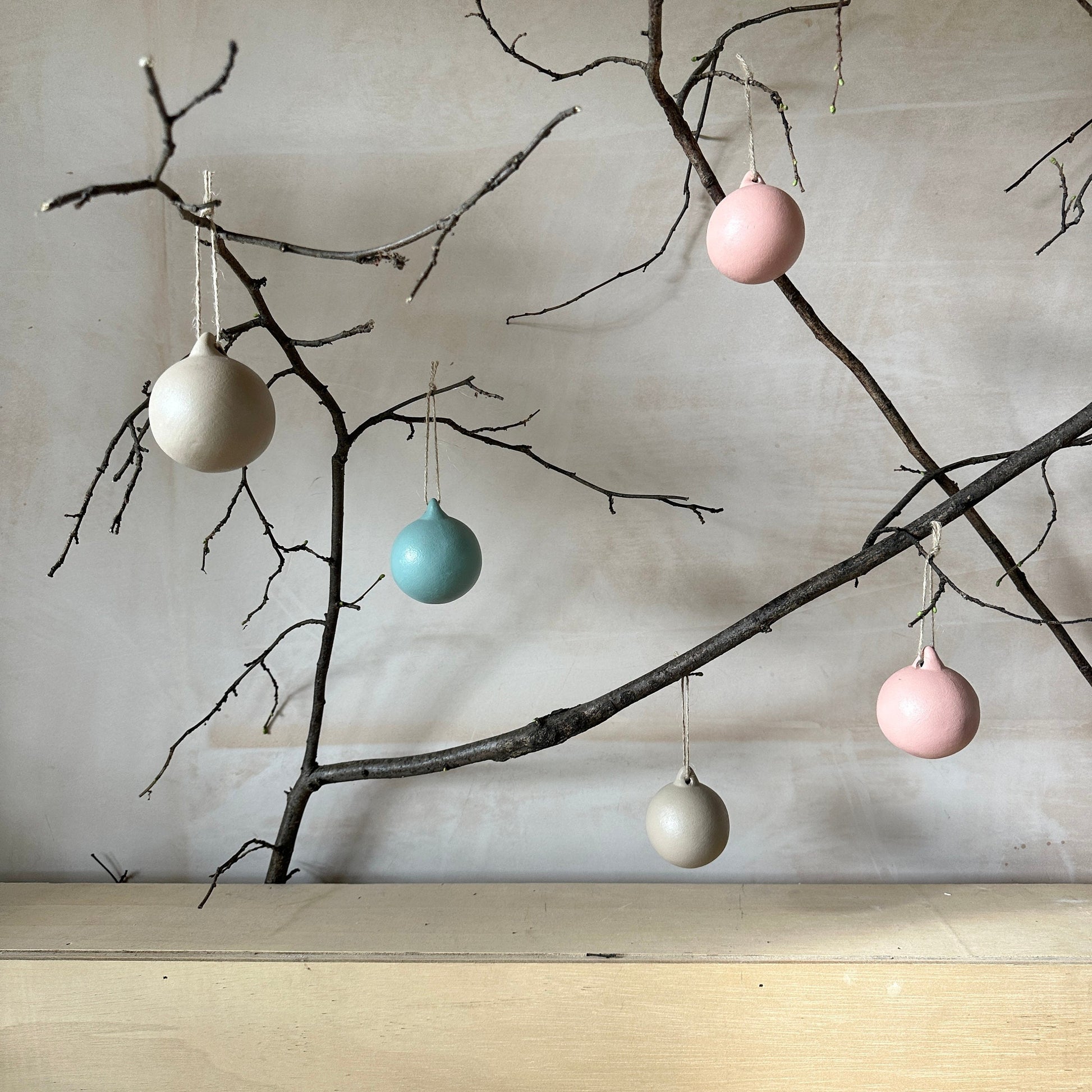 Set of 6 Pastel Ceramic Baubles - Xmas Ornament - Christmas Tree Decoration - Hand Painted - Pastel Pink Baubles - Pastel Blue Baubles - 6cm