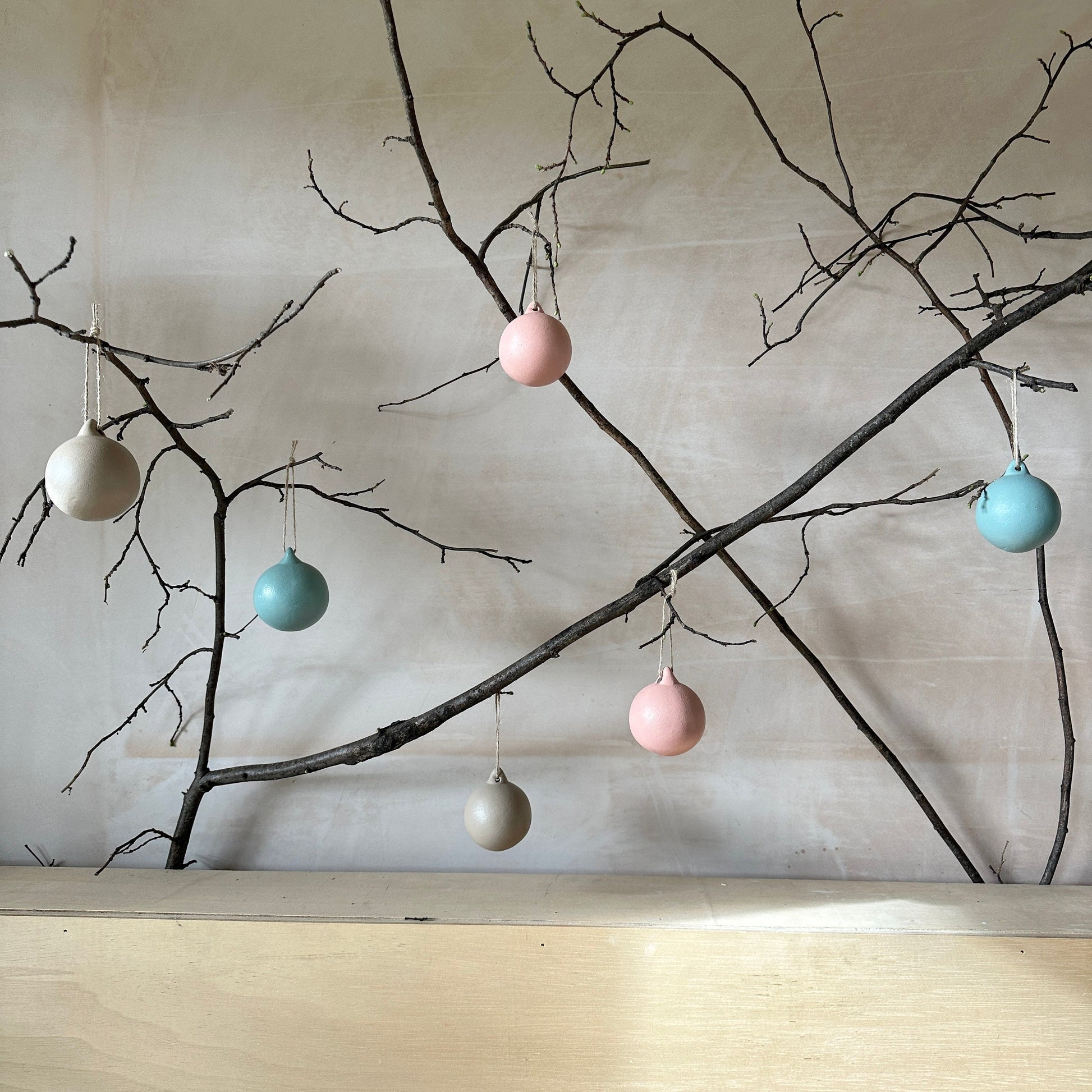 These are our pastel colour ceramic baubles that perfectly match our range of award winning geometric style wall hangings. Other colours can be done at request. Please check out my design award winning wall hangings for matching decor!