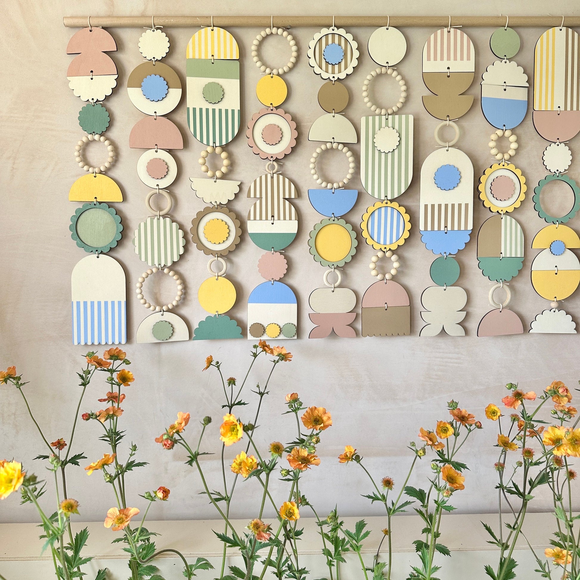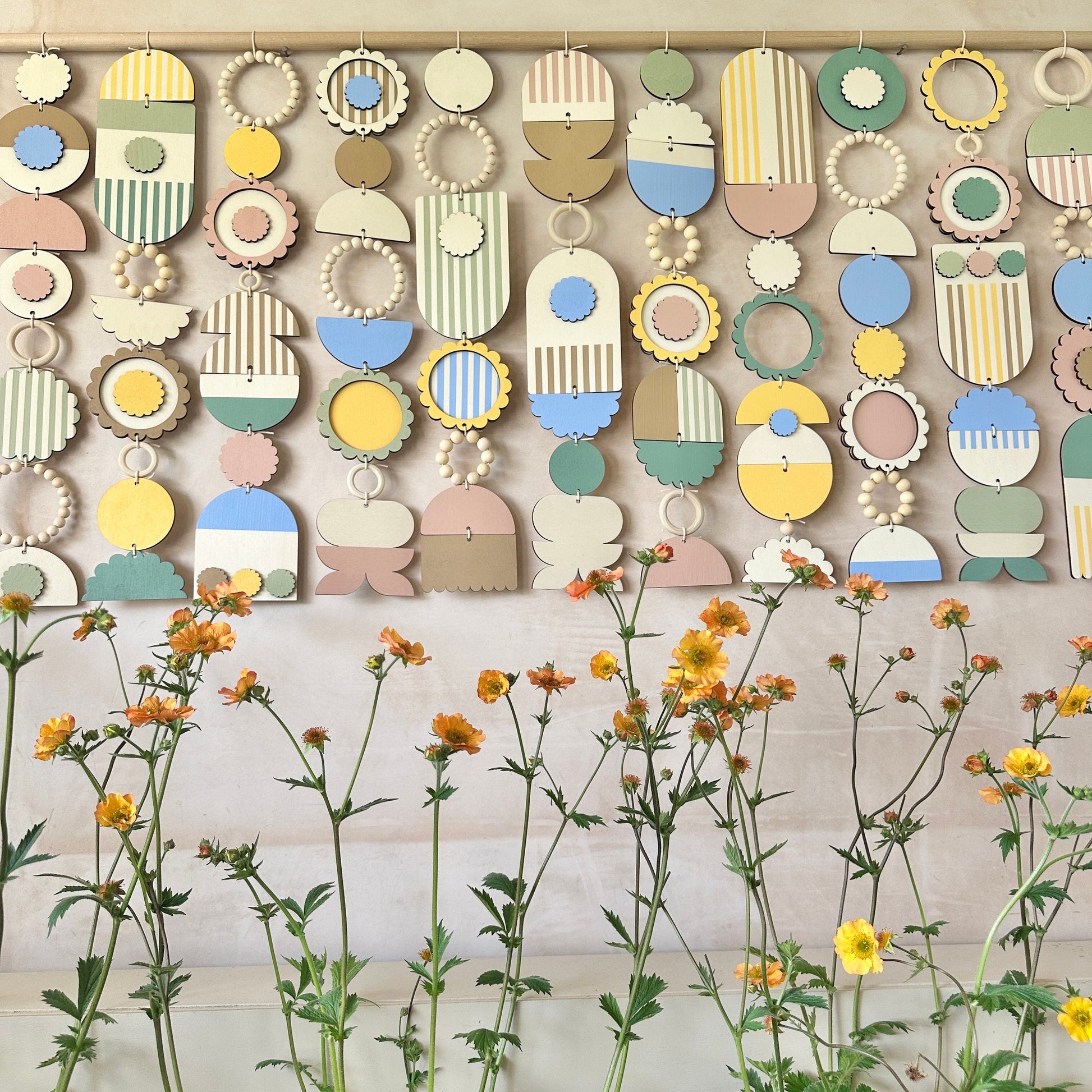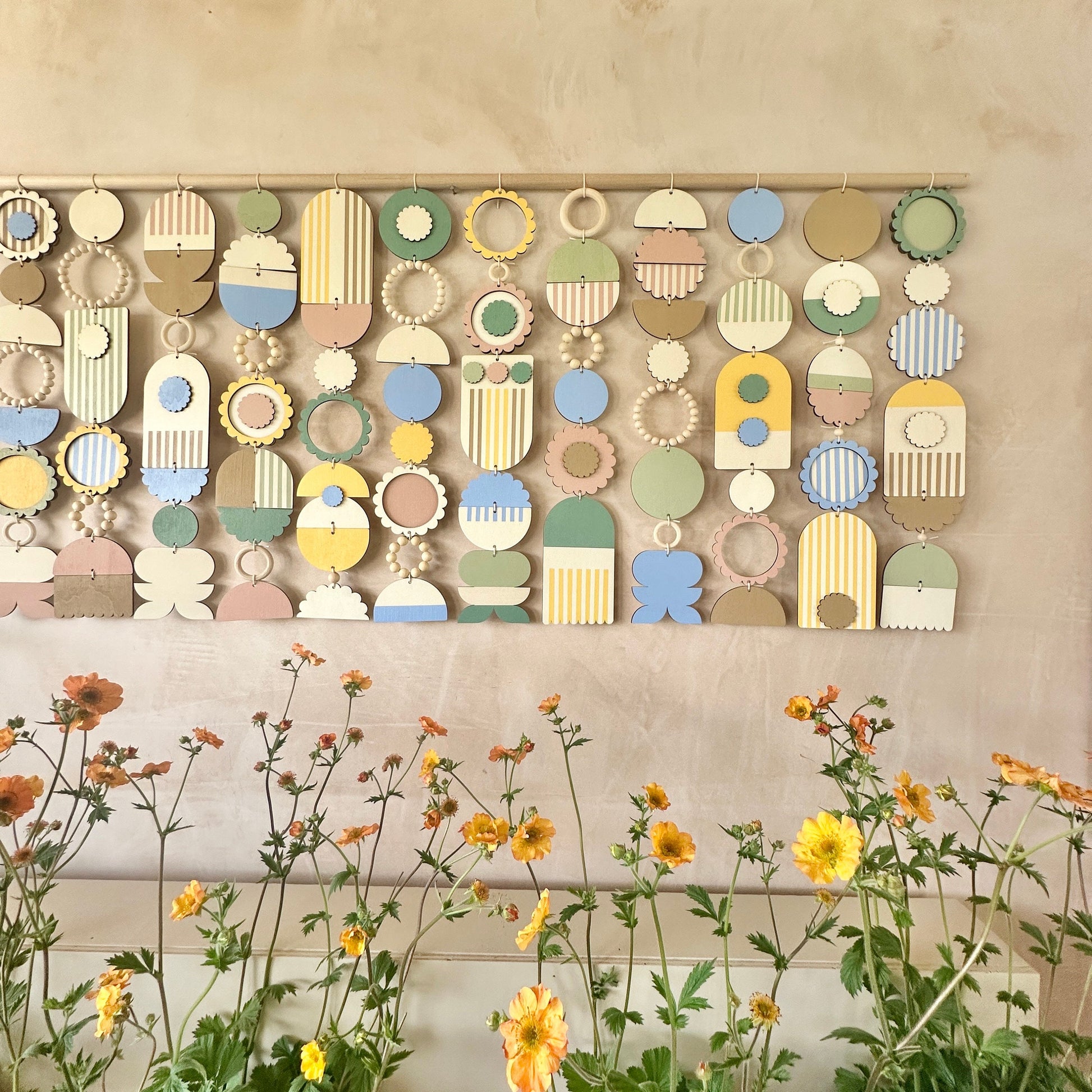Pastel tones give these hanging pieces of art a soft and modern feel and the shapes are soft and floral, great for bringing some colour and creativity into your home.