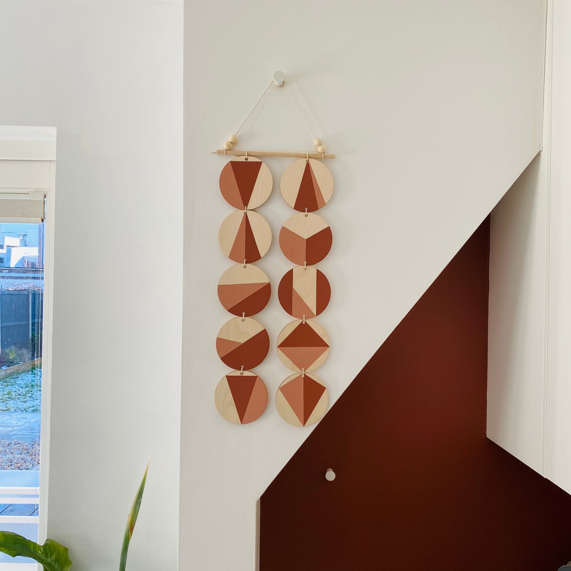 Wall hanging - Natural Geometric Plywood - Scandi Hygge Boho - Wall Hanging - Wall Art - Dark Terracotta and Dusky Pink Wall Art