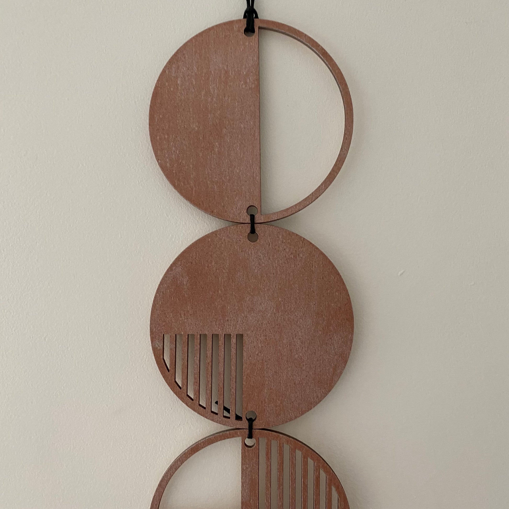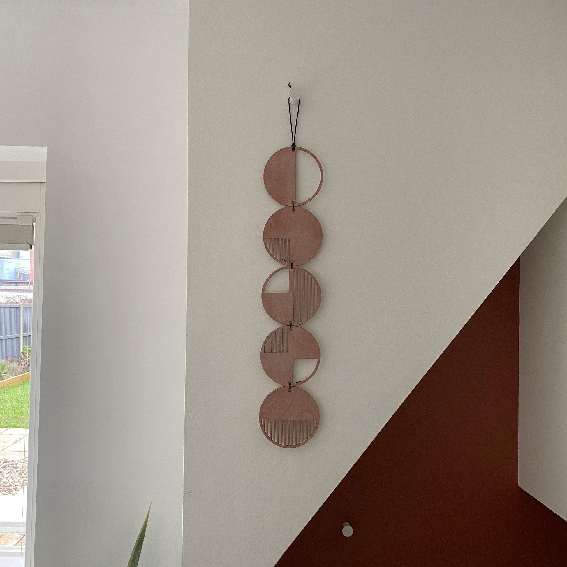 Lovingly handmade 5 tier hanger. This Modern style metallic copper wall hanging would make a beautiful addition to any room to create a modern contemporary feel. Made from laser cut Plywood and painted in Milton Keynes by myself.