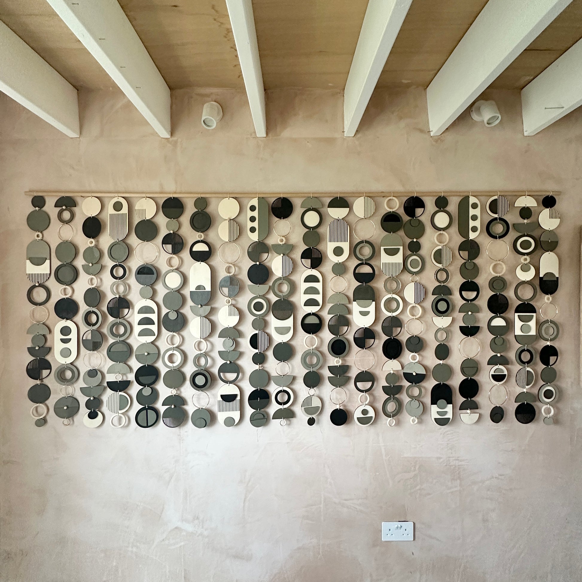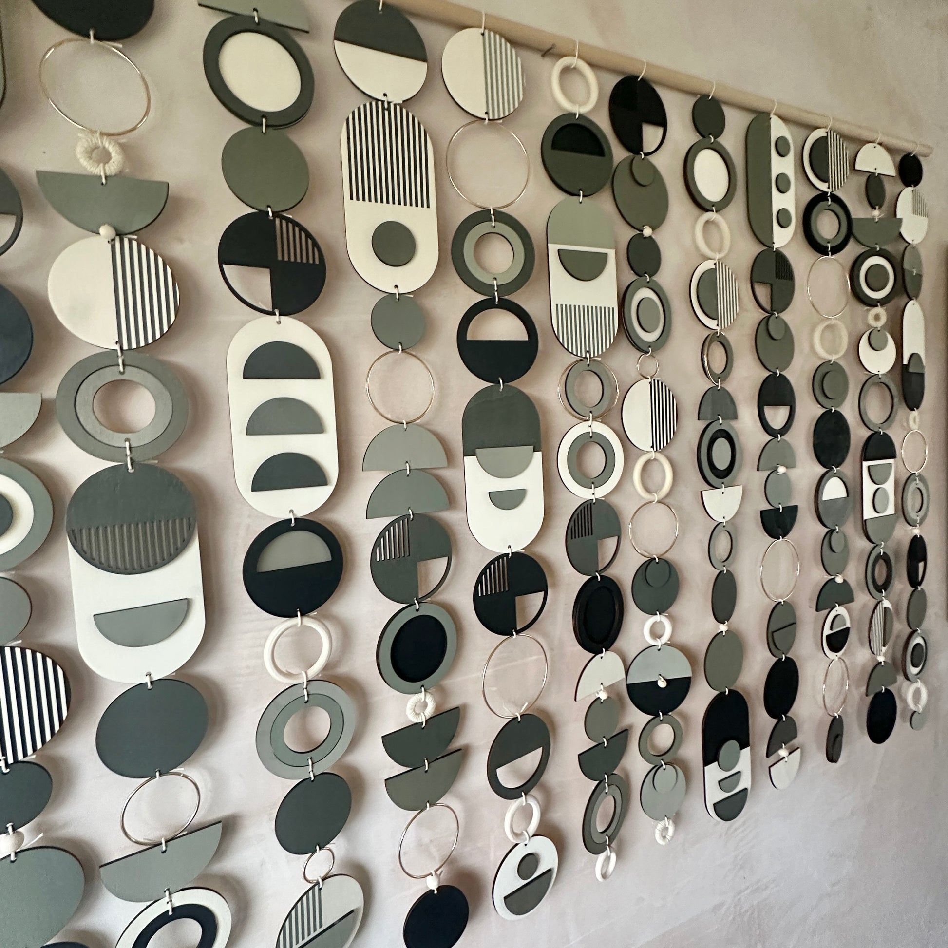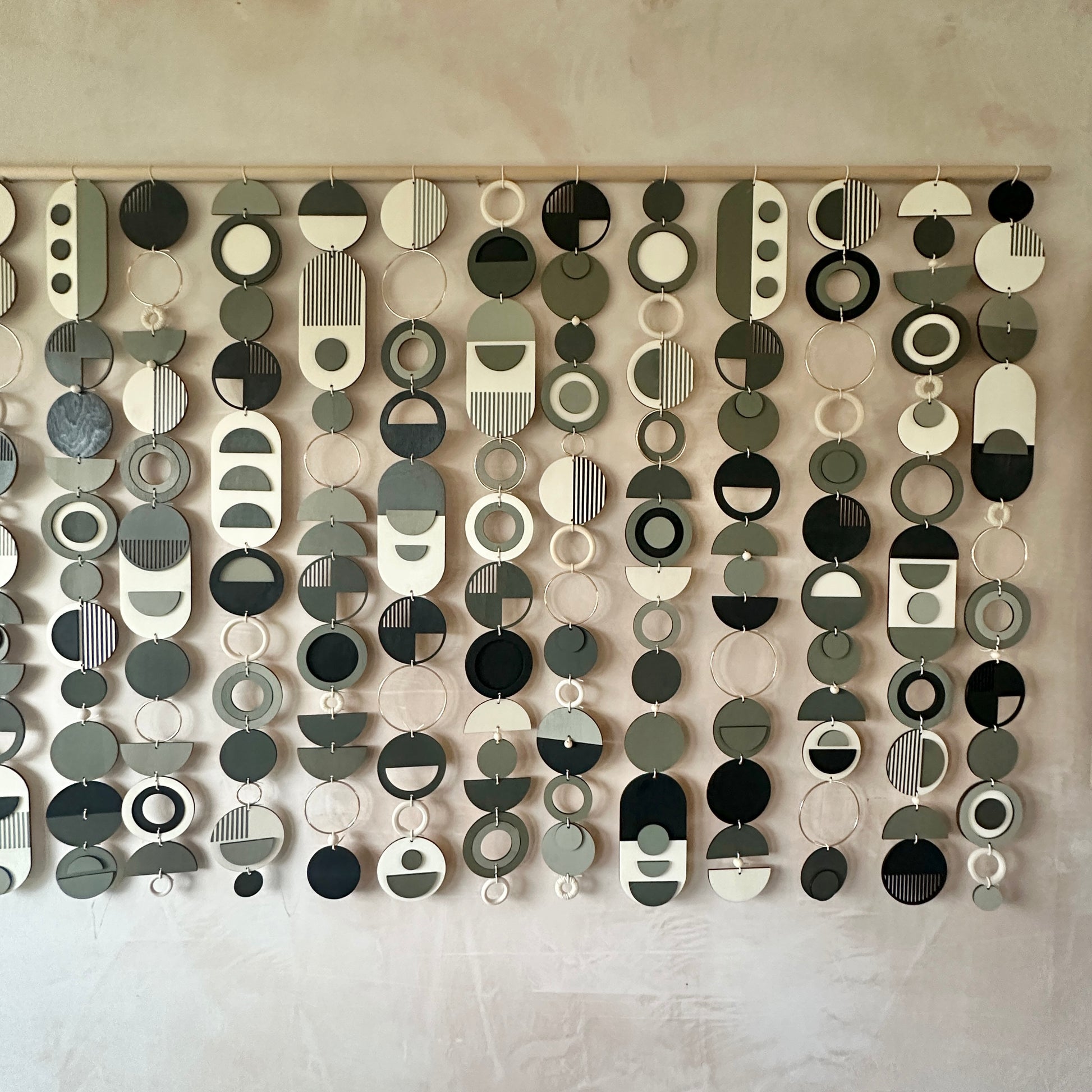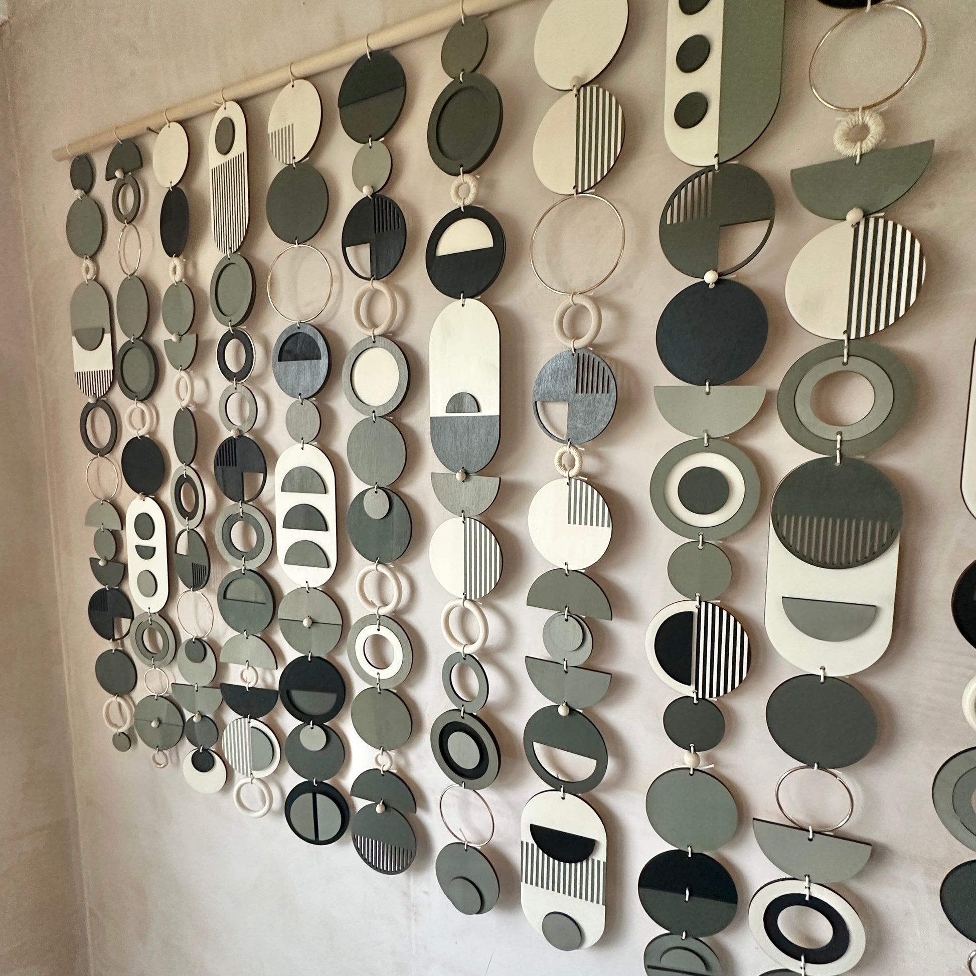 You may wish to supply your own dowel, branch or rod to create a unique look and to have the whole piece on one rod. For example some customers have utilised driftwood or other poles to complete the piece.