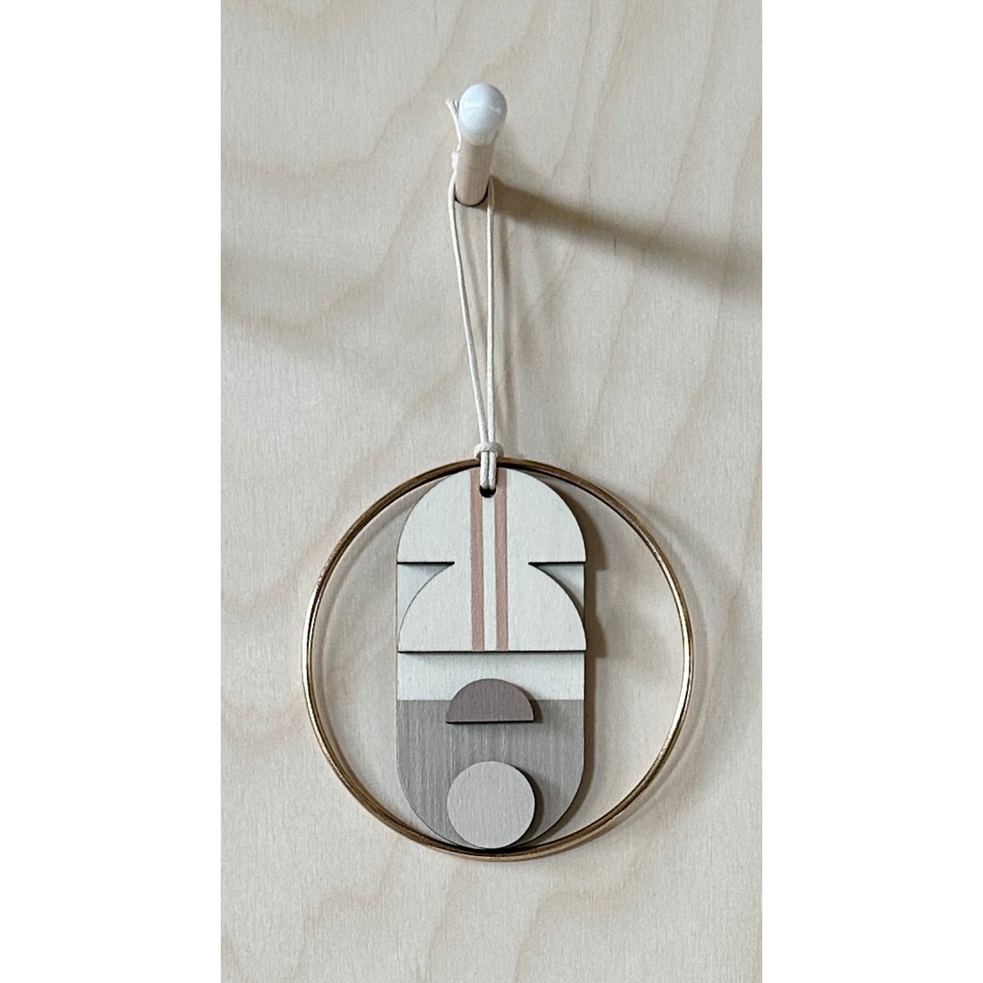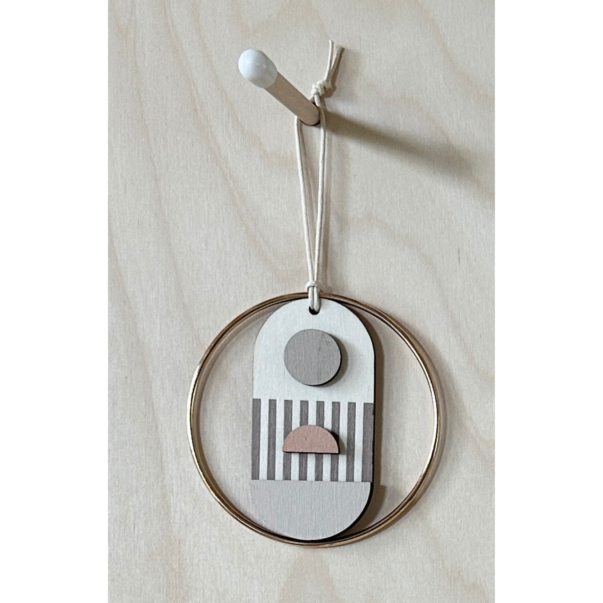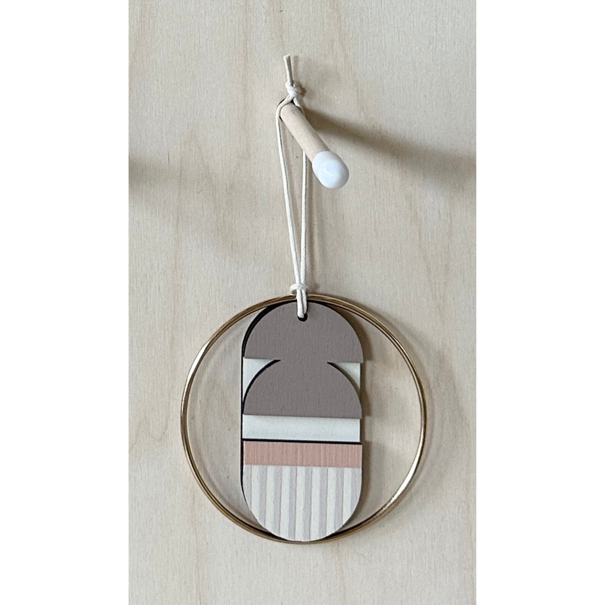 Lovingly handmade modern mini wall art. These decorations are made from plywood, paint, metal and waxed cord. The colours used are natural tones with a light pink and gold. This mini wall hanging would make a beautiful addition to any room to create a modern mid-century feel. Made from sustainable plywood, hand painted and constructed in Milton Keynes, England.