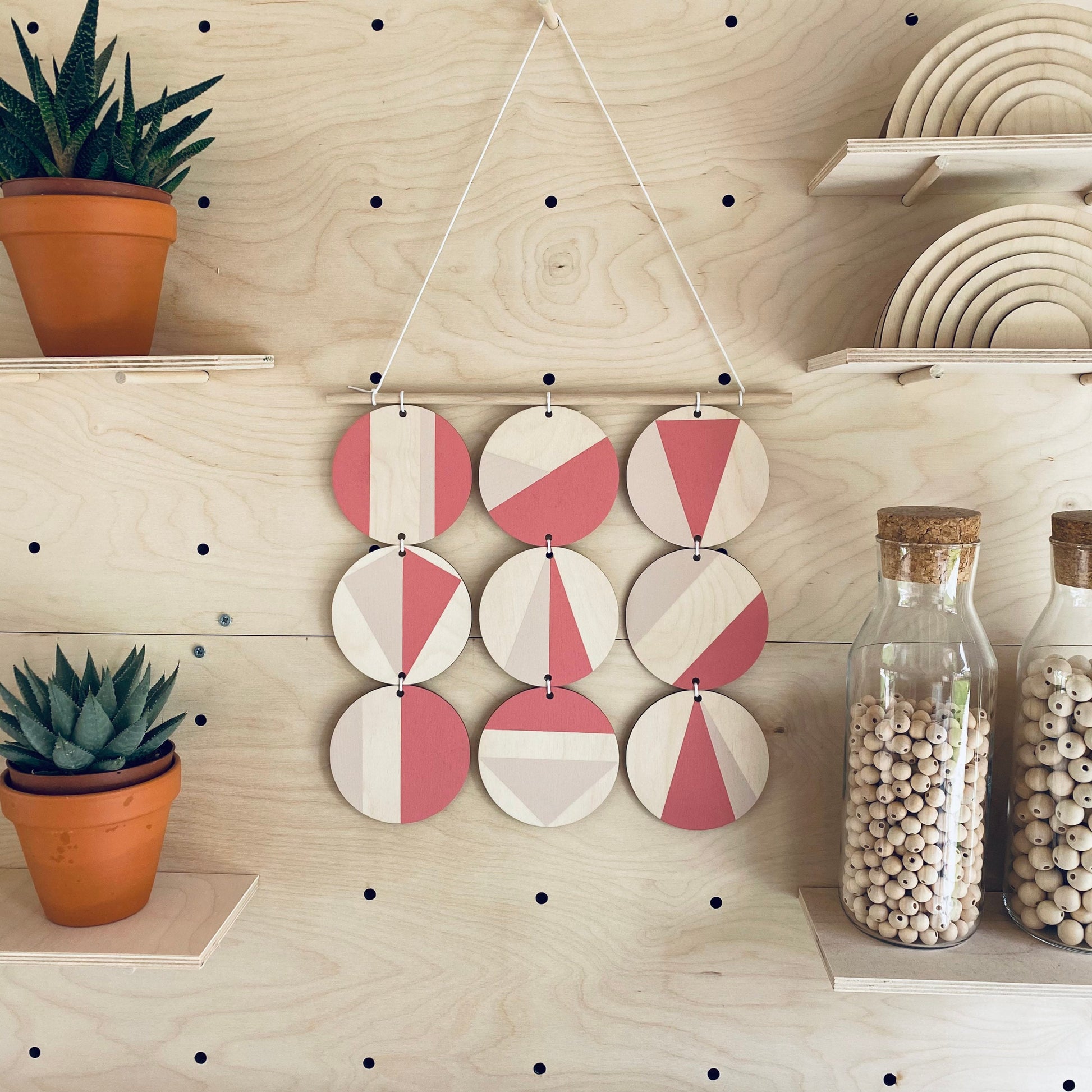 Lovingly handmade three tier wall hanging. This modern style geometric wall hanging in different colour styles would make a beautiful addition to any room to create a modern Scandinavian feel. Designed and handmade in Milton Keynes.