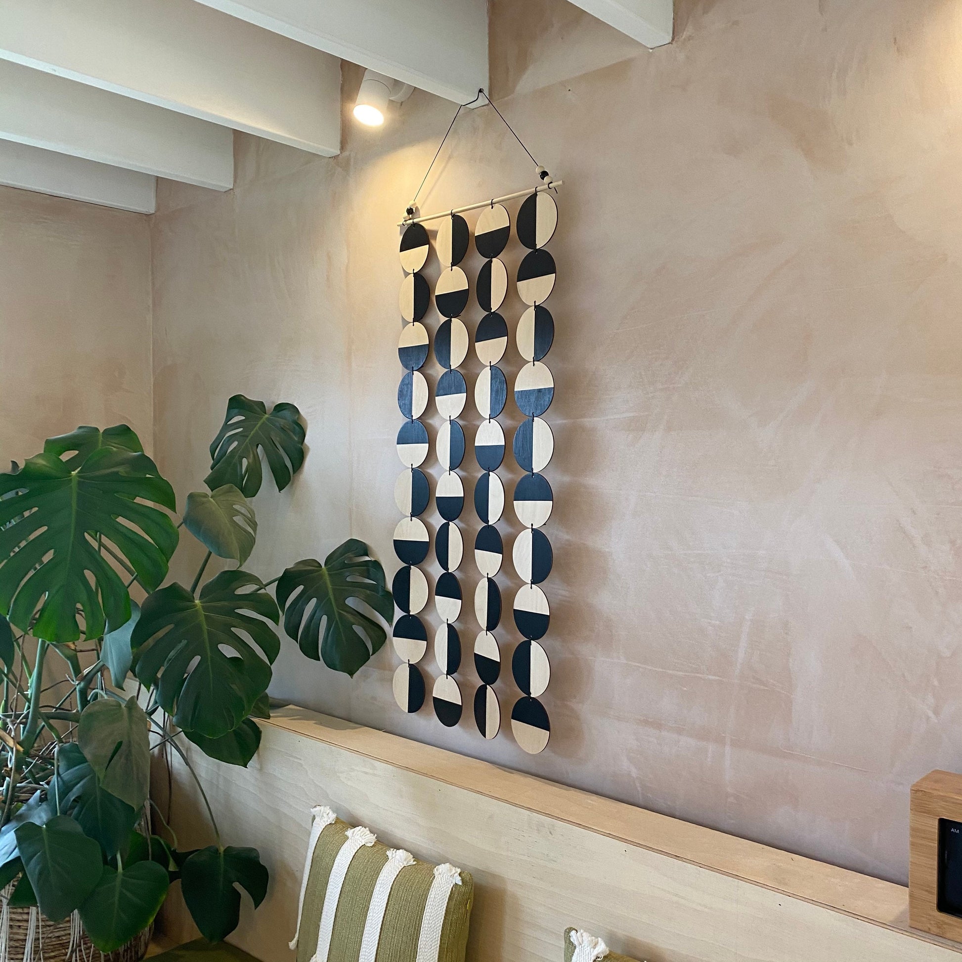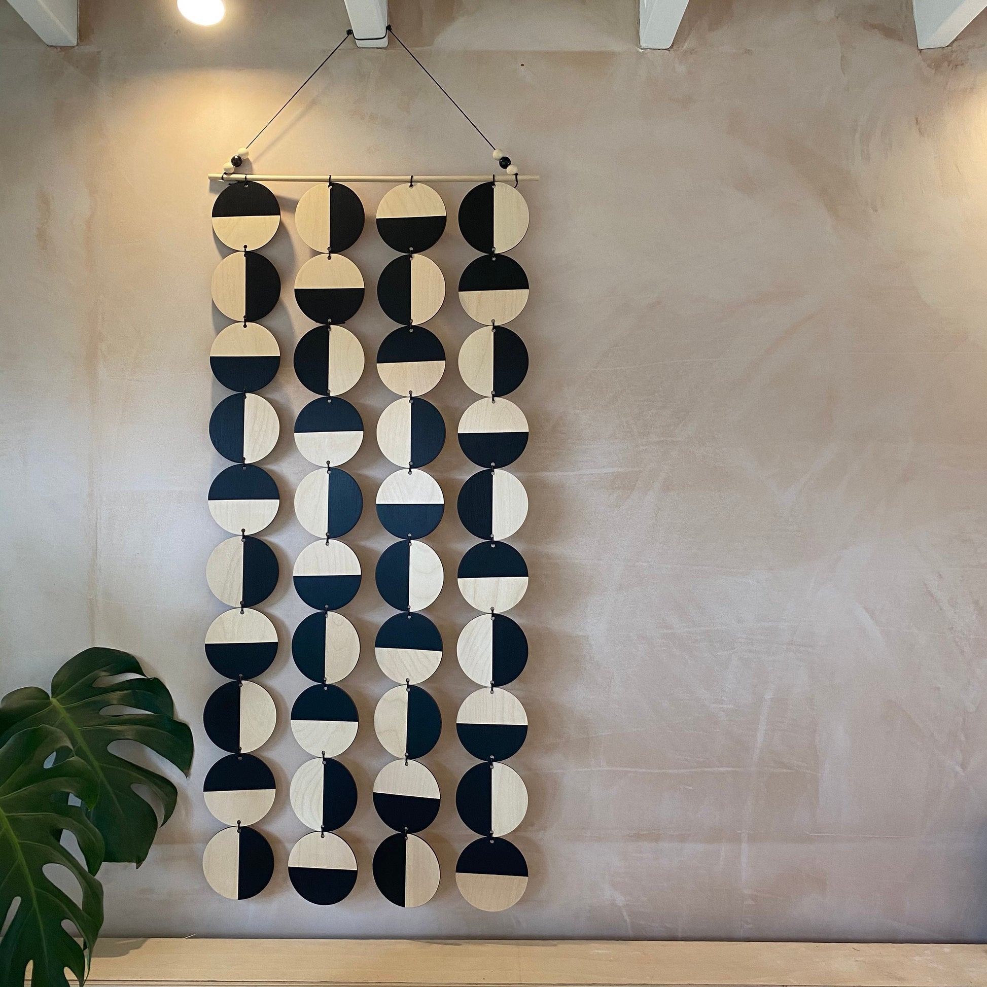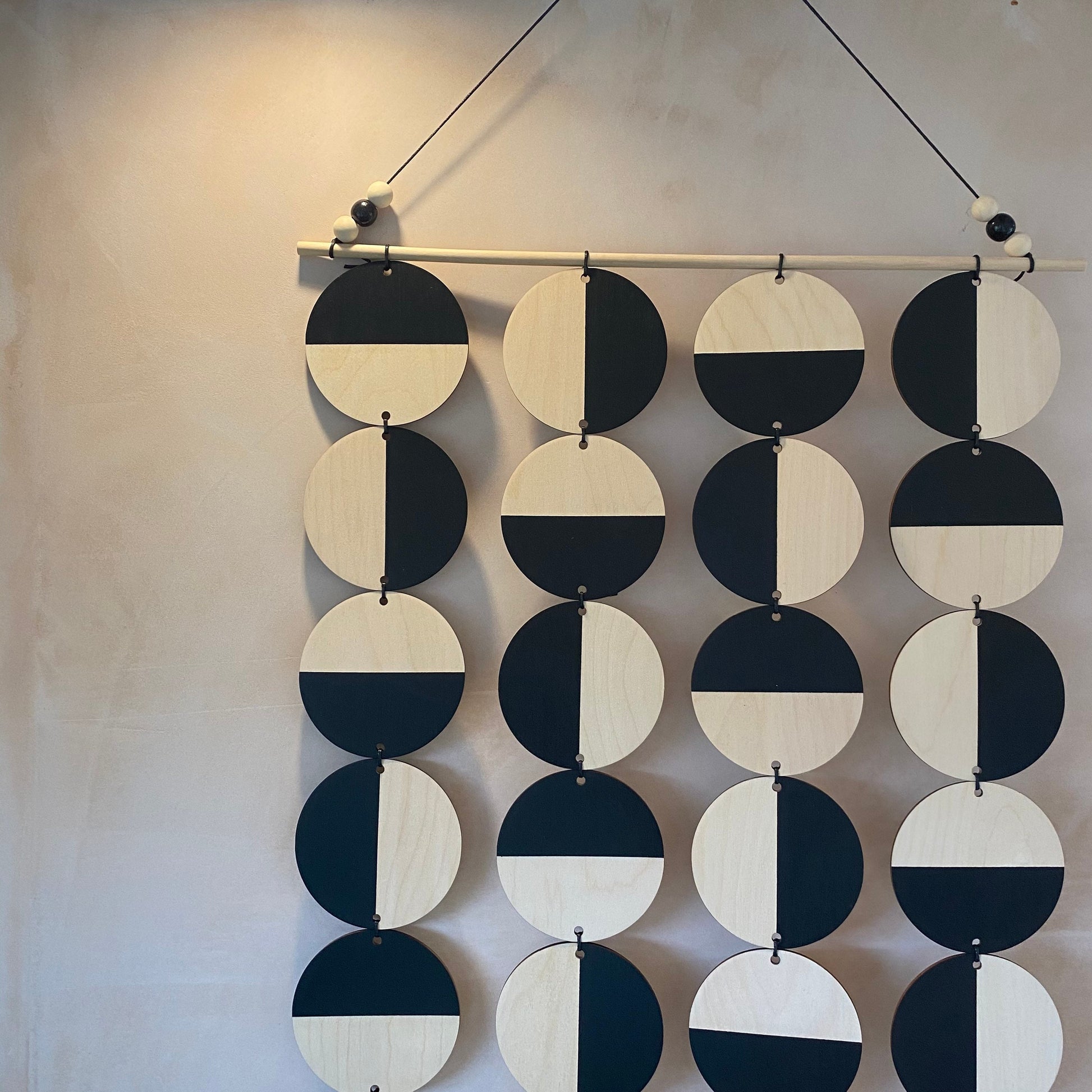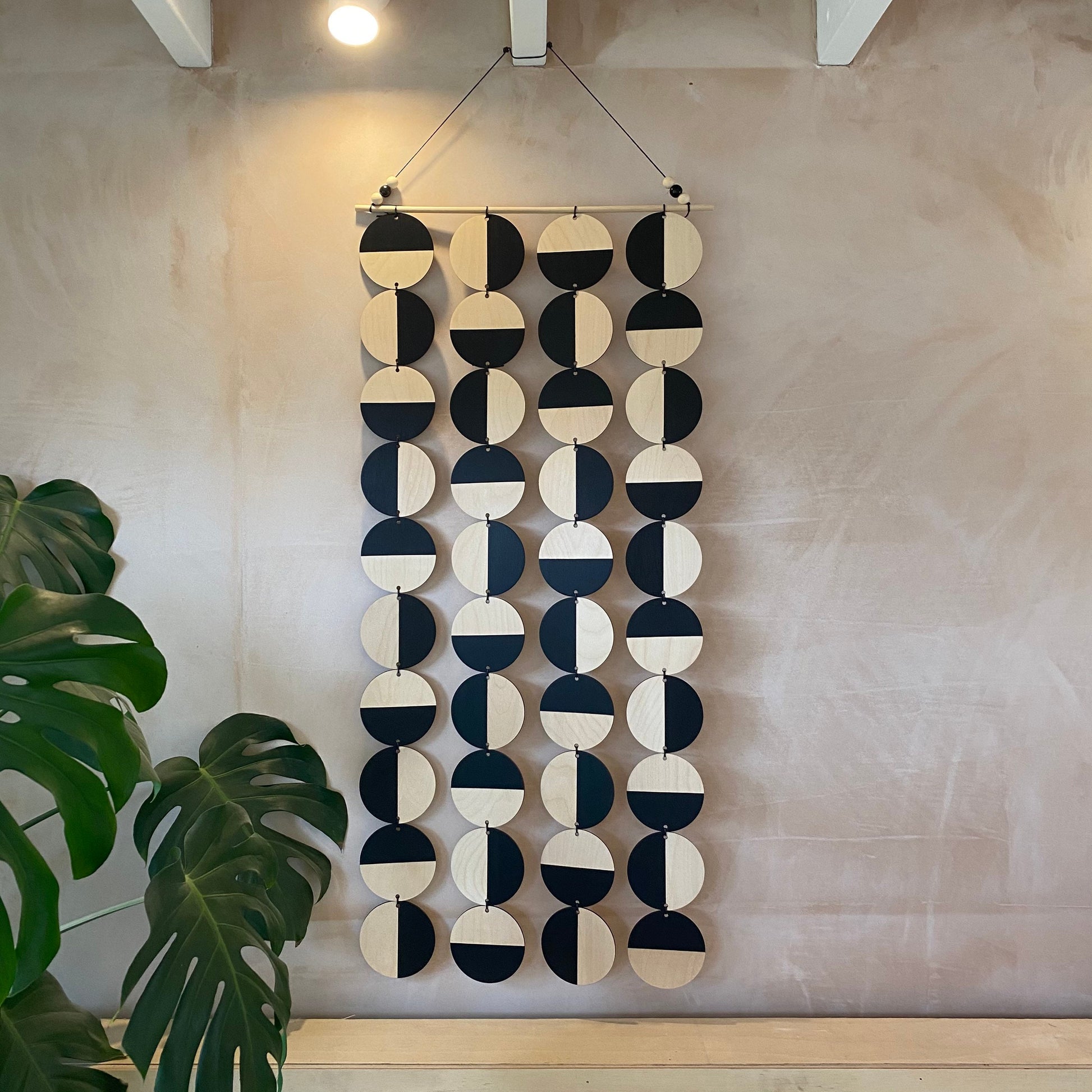 Lovingly handmade 10 tier wall hanging. This plywood wall piece would make a beautiful addition to any room to create a modern Scandinavian feel. Hand painted and constructed with care and attention.