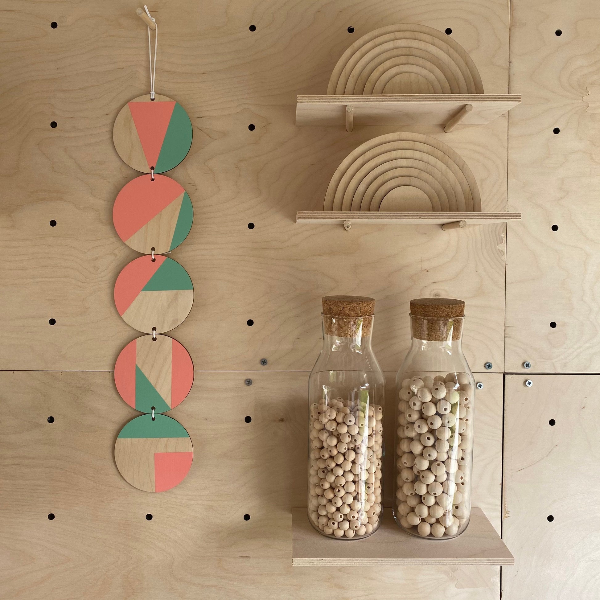 Neon Wall hanging - Colourful Geometric Art - Plywood Decor - Scandi Hygge Boho - Wall Hanging - Wall Art multi - Neon Pink and Neon Mint