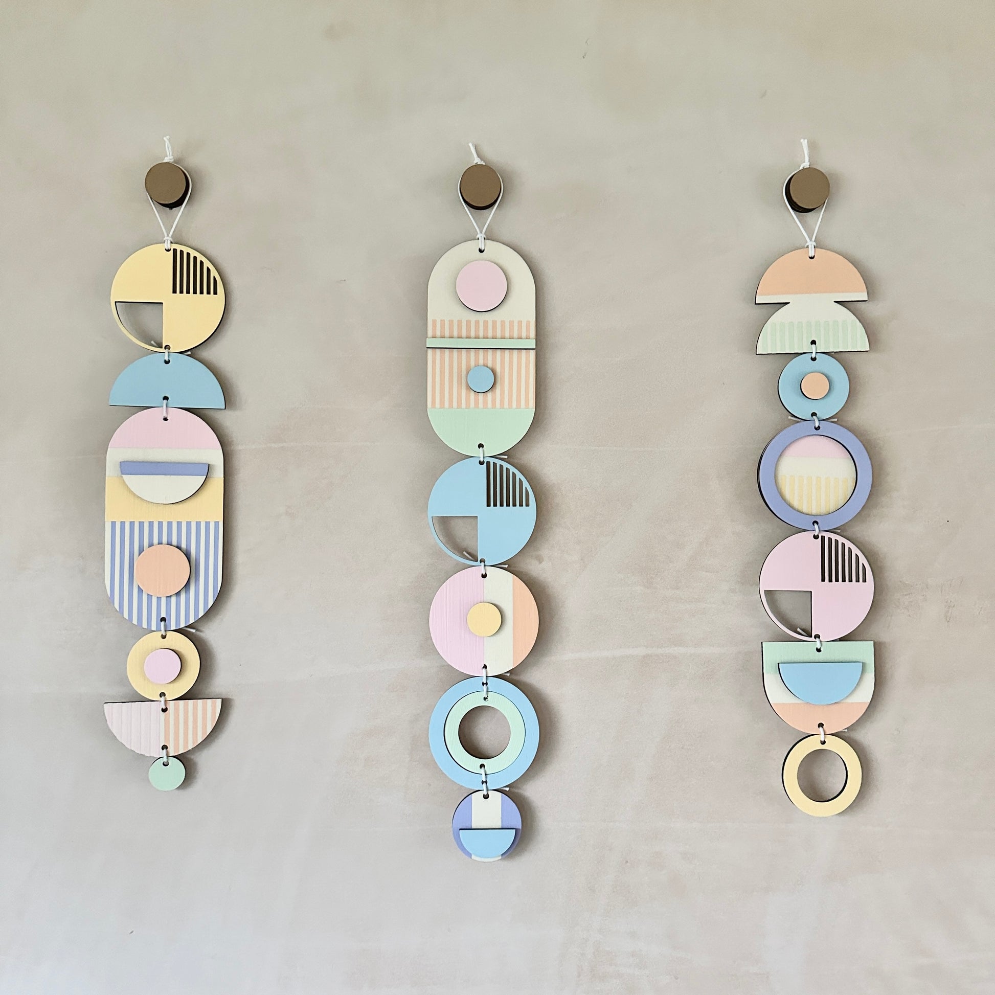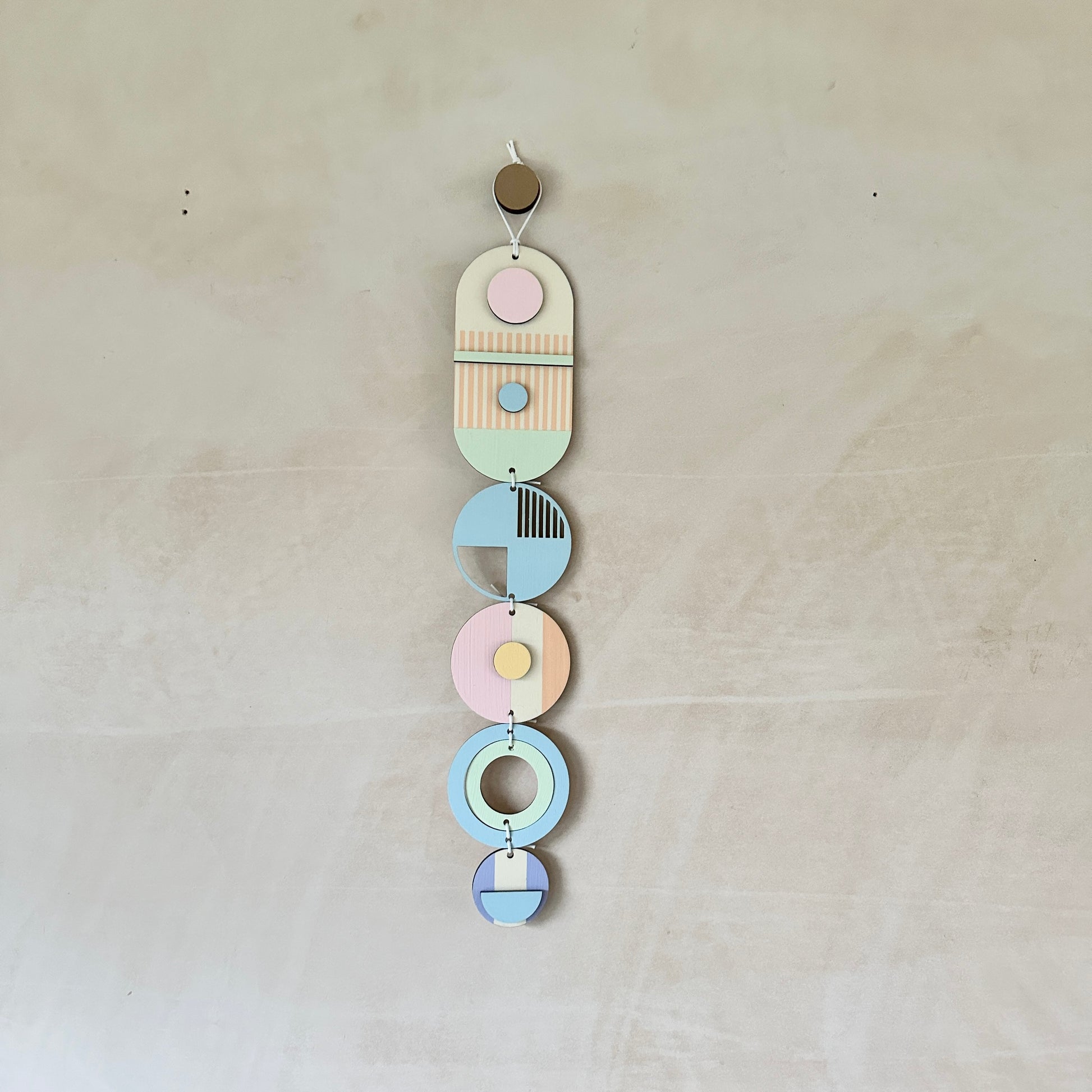 Small Modern Wall Hanging - Pastel Geometric Art - Wood Decor - Unusual Wall Hanging - Kids Wall Jewellery- Contemporary Designs - New Deco