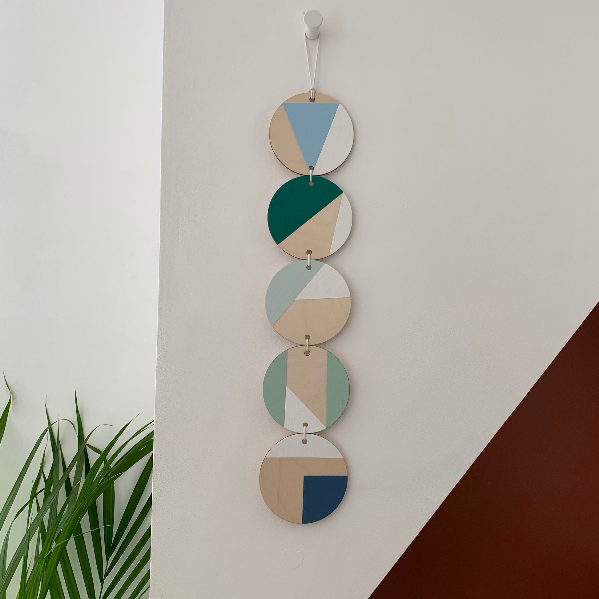Wall hanging - Colourful Geometric Art - Plywood Decor - Scandi Hygge Boho - Wall Hanging - Wall Art multi - Green and Blues